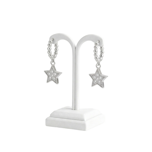 925 Silver Beaded Hoop Star Drop Earrings