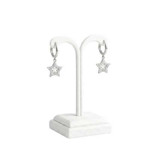 925 Sterling Silver CZ Star Hoop Earrings