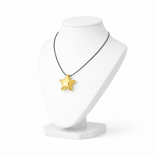 Black Cord Polished Star Pendant Necklace