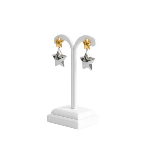 Gold & Silver Double Star Drop Stud Earrings