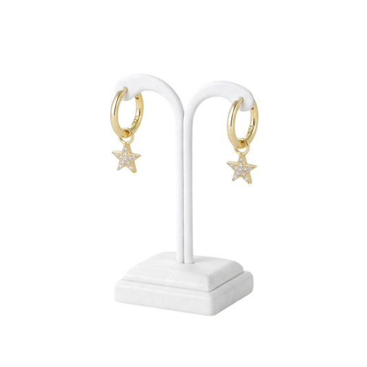 Minimal Star Drop Hoop Earrings