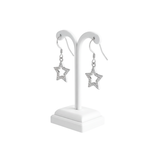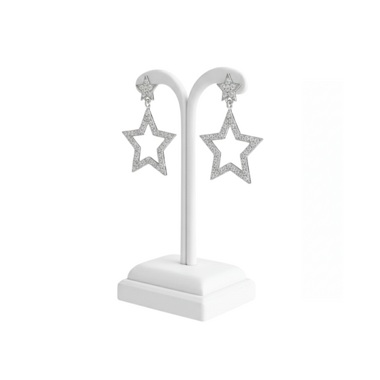 Sterling Silver Hollow Star Drop Earrings