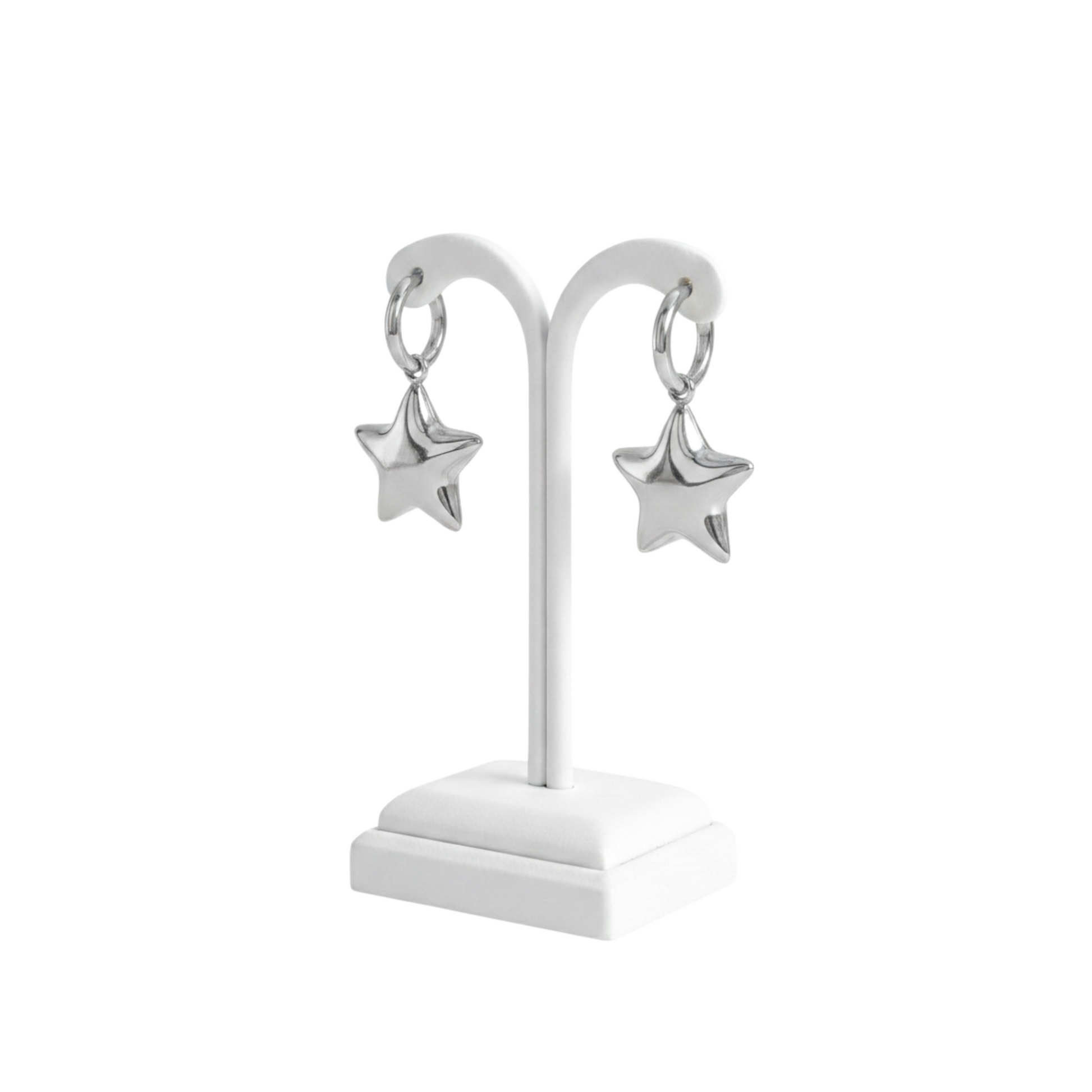 The puffy five-pointed star design symbolizes confidence, dreams, and individuality, making these earrings perfect for women who love meaningful and fashionable star jewelry. The secure hinged hoop closure provides comfort and reliability for everyday wear.