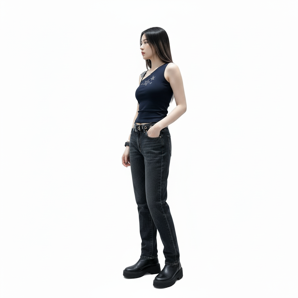 Elevate your star-inspired wardrobe with the Cosmic Edge Tank — a sleek, asymmetrical piece designed for those who love minimal style with a bold celestial twist. The navy base paired with silver star detailing creates a striking look that transitions effortlessly from day to night. Chic, edgy, and ultra-versatile, this tank is your new statement essential.