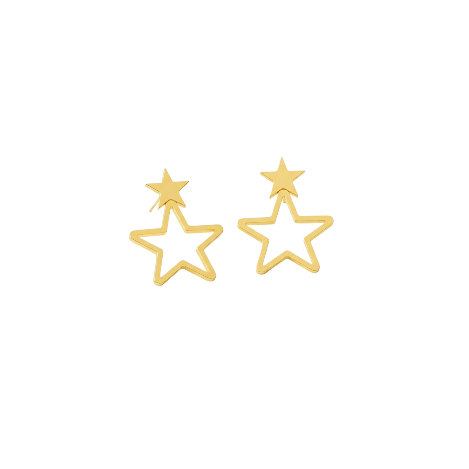 Add a touch of modern elegance with these minimalist double star outline earrings, designed for women who love simple yet unique celestial jewelry. Featuring a creative layered star design, each earring combines a small solid five-point star stud with a larger hollow star frame, creating a stylish floating effect.